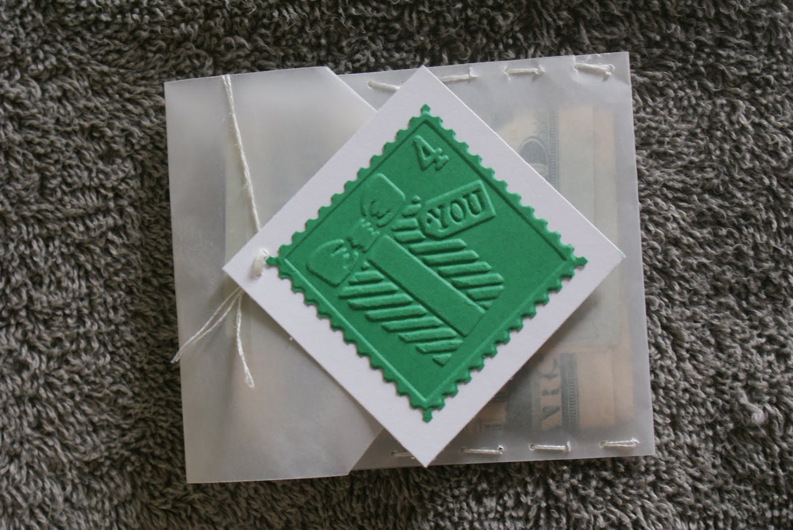 To create your own vellum green tea surprise - simply cut a strip of vellum the same size as a bag of tea - folding to leave a flap. Cut one corner on an angle. Use the cut piece to measure and cut the opposing corner to match.